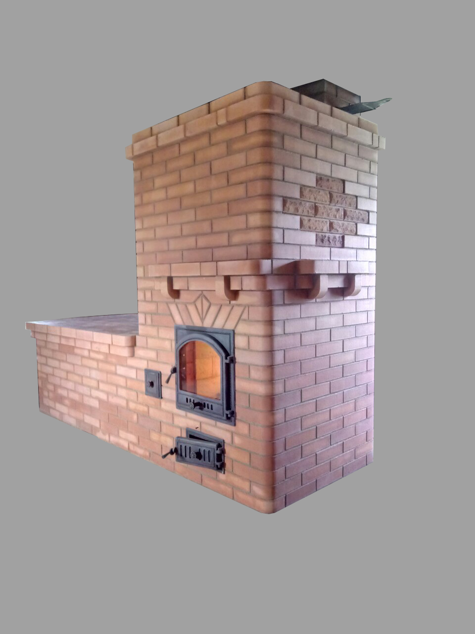 Базовым вариантом является печи, построенный из печного рабочего кирпича марки М200, который в дальнейшем можно оштукатурить, оформить кафелем, плиткой или камнем.